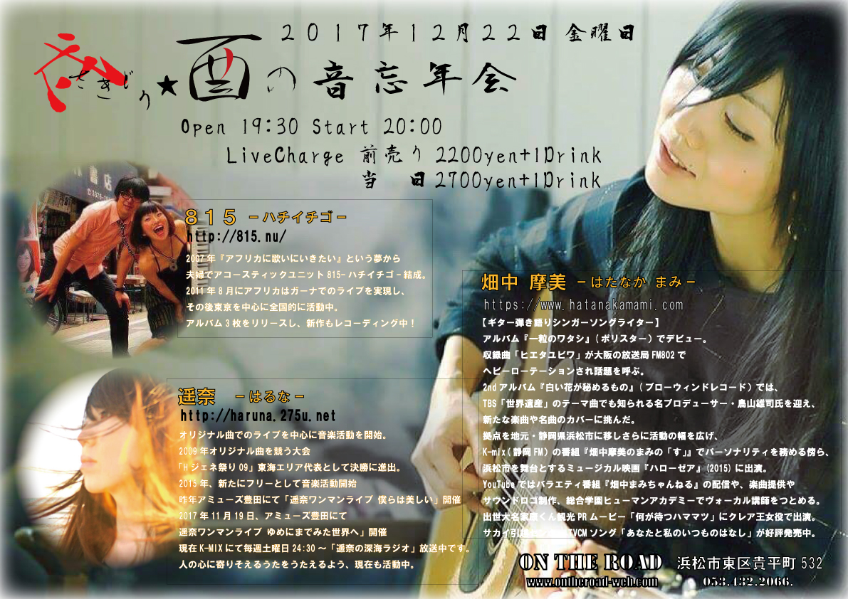 今年の2017/1/11に引き続き 畑中摩美主催の 「酉の音」Liveです